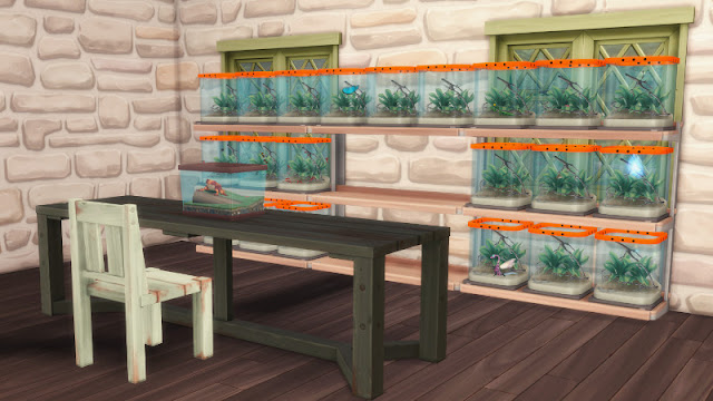 完成したテーブルを2階の昆虫を展示してる部屋に置いてみました。色は全部で12色。前回報酬で作れるようになったチェアとセットのようですね。